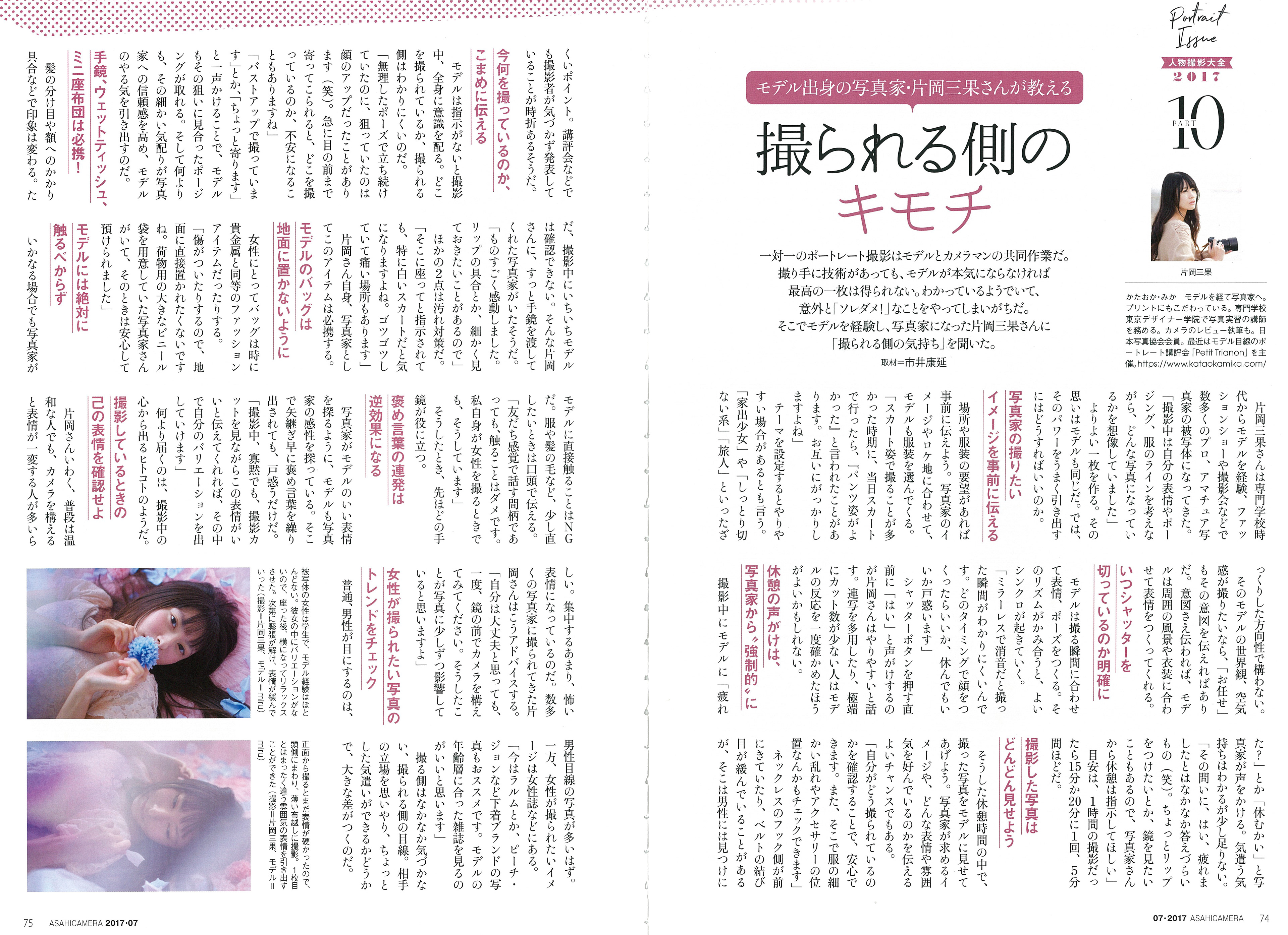ポートレート、スナップといった正統派のアプローチはもちろん、ふだんアサヒカメラに登場しない写真家の「人をモデルにした非ポートレート型の作品」など、人物写真の多様性を体現する「大全」にしてみました。レンズワークやライティング撮影技法の話に加え、「撮影される側のキモチ」を元モデルの女性写真家が語っている記事を盛り込むことで、読者(撮影愛好家)が自身の撮影行為を俯瞰できるようにしました。結果、人物写真はモデルとの共同作業であることを、あらゆるアプローチで紹介した大特集に。売上も前年のヌード特集号の水準を維持できました。